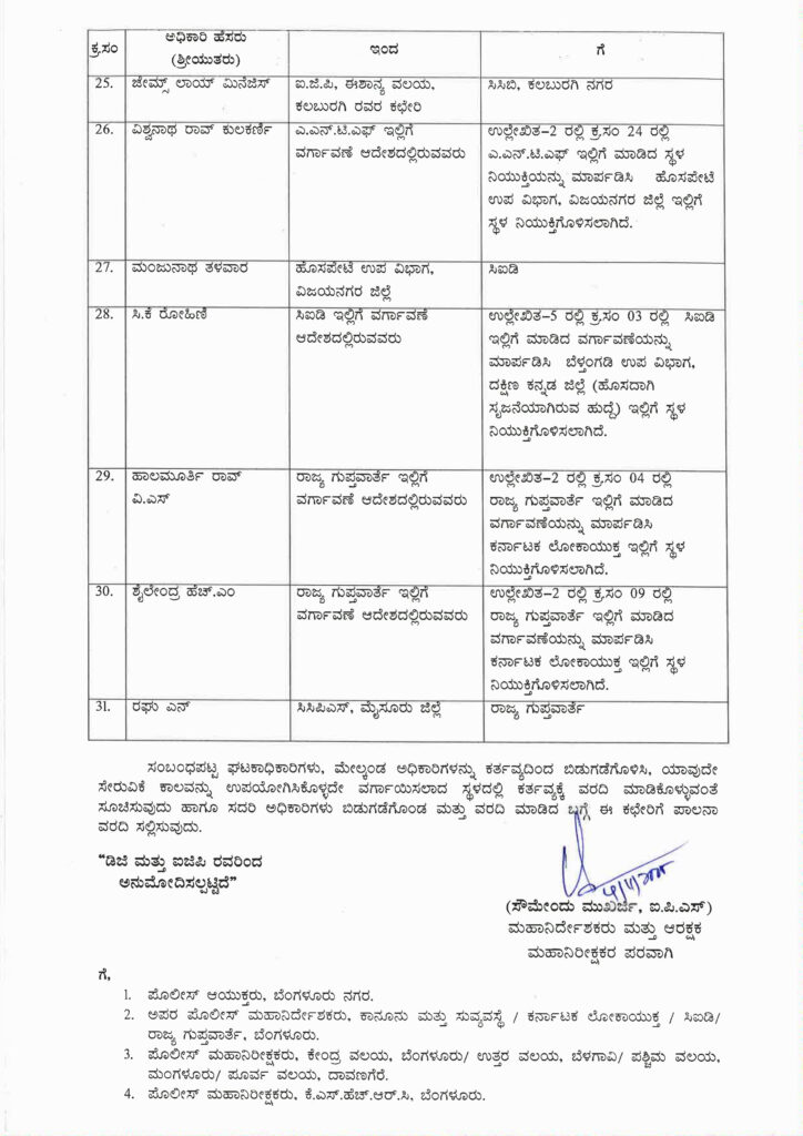 ಹೊಸದಾಗಿ ಬೆಳ್ತಂಗಡಿ ಉಪವಿಭಾಗಕ್ಕೆ ಡಿವೈಎಸ್ಪಿಯಾಗಿ ಬೆಂಗಳೂರು ವೈಟ್ ಫೀಲ್ಡ್ ಸೆನ್ ಡಿವೈಎಸ್ಪಿಯಾಗಿರುವ ಸಿ.ಕೆ.ರೋಹಿಣಿ ಅವರನ್ನು ನೇಮಕ ಮಾಡಿ ನ.4 ರಂದು ಸರಕಾರ ಆದೇಶ ಹೊರಡಿಸಿದೆ.