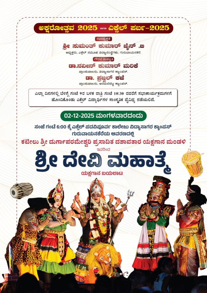 ಗುರುವಾಯನಕೆರೆ ಎಕ್ಸೆಲ್ ಕಾಲೇಜಿನಲ್ಲಿ ನಾಡು-ನುಡಿಯ ರಾಷ್ಟ್ರೀಯ ಸಮ್ಮೇಳನ ಅಕ್ಷರೋತ್ಸವ ಹಾಗೂ ಎಕ್ಸೆಲ್ ಪರ್ಬ-2025