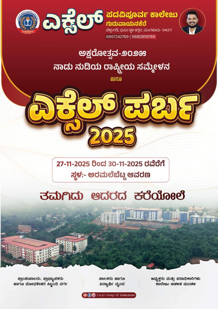 ಗುರುವಾಯನಕೆರೆ ಎಕ್ಸೆಲ್ ಕಾಲೇಜಿನಲ್ಲಿ ನಾಡು-ನುಡಿಯ ರಾಷ್ಟ್ರೀಯ ಸಮ್ಮೇಳನ ಅಕ್ಷರೋತ್ಸವ ಹಾಗೂ ಎಕ್ಸೆಲ್ ಪರ್ಬ-2025