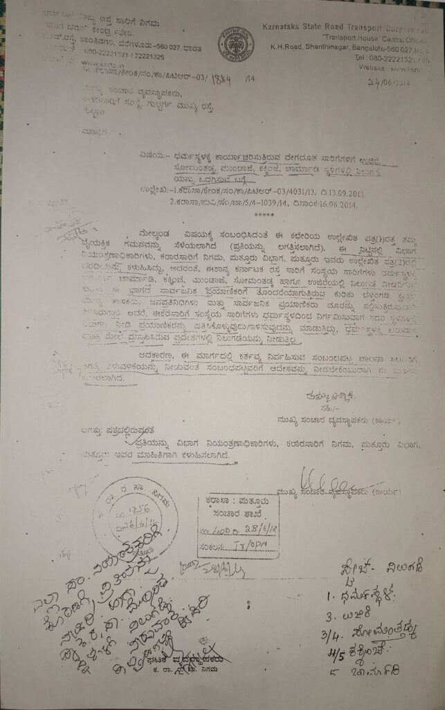 ಬೆಳ್ತಂಗಡಿ: ಮುಂಡಾಜೆ ಗ್ರಾಮ ಪಂಚಾಯತ್ ವ್ಯಾಪ್ತಿಯಲ್ಲಿರುವ ಸೋಮಂತಡ್ಕ ಬಸ್ ನಿಲುಗಡೆ ವಿಚಾರದಲ್ಲಿ ಗಂಭೀರ ನಿರ್ಲಕ್ಷ್ಯದ ಘಟನೆ ಬೆಳಕಿಗೆ ಬಂದಿದೆ. ಸ್ಥಳದಲ್ಲೇ “ವೇಗದೂತ ಹಾಗೂ ಸಾಮಾನ್ಯ ಬಸ್ ನಿಲುಗಡೆ” ಎಂದು ಬೋರ್ಡ್ ಅಳವಡಿಸಿರುವುದರ ಜೊತೆಗೆ, ರಾಜ್ಯ ರಸ್ತೆ ಸಾರಿಗೆ ಸಂಸ್ಥೆ ವತಿಯಿಂದಲೂ ಅಧಿಕೃತ ಆದೇಶ ನೀಡಲಾಗಿದ್ದರೂ ಈ ಆದೇಶವನ್ನು ಕ್ಯಾರೇ ಮಾಡದೇ ಪ್ರಯಾಣಿಕರಿಗೆ ಕೋರಿಕೆ ನಿಲುಗಡೆ ಬಗ್ಗೆ ಕೇಳಿದರೂ ಬಸ್ ನಿಲ್ಲಿಸಿರುವ ಘಟನೆ ಬೆಳಕಿಗೆ ಬಂದಿದೆ.
