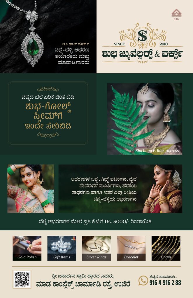 ಉಜಿರೆ: ಉಜಿರೆಯ ಮಾಡ ಕಾಂಪ್ಲೆಕ್ಸ್ನಲ್ಲಿ ಕಳೆದ ಹಲವು ವರ್ಷಗಳಿಂದ ಯಶಸ್ವಿಯಾಗಿ ಕಾರ್ಯನಿರ್ವಹಿಸುತ್ತಿರುವ, ಗ್ರಾಹಕರ ನಂಬಿಕೆಗೆ ಹೆಸರುವಾಸಿಯಾದ ಮತ್ತು ಸದಾ ನಗುಮುಖದ ಸೇವೆ ನೀಡುತ್ತಿರುವ ಸುಧಾಕರ ಆಚಾರ್ಯ ಅವರ ಮಾಲಕತ್ವದ ಶುಭ ಜ್ಯುವೆಲ್ಲರ್ಸ್ & ವರ್ಕ್ಸ್ ವತಿಯಿಂದ ಗ್ರಾಹಕರಿಗಾಗಿ “ಶುಭ-ಗೋಲ್ಡ್” ಯೋಜನೆ ಆರಂಭಗೊಂಡಿದೆ.